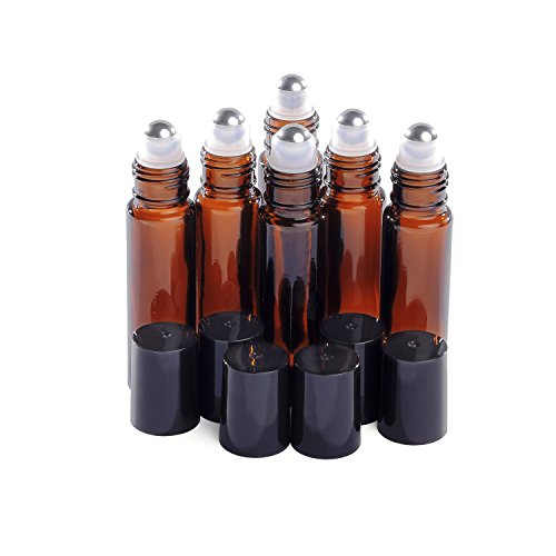 - 6 x 10ml (0.33oz) new empty roller bottlers with stainless steel roller balls. They also made of UV protected glass.