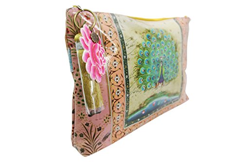 Vintage Design Peacock Love Graphic Art Design Oil Cloth Large Make-up or Accessory Travel Bag