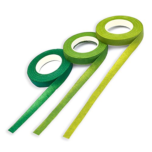 - 🎅Floral stem tape: 6 pack florist stem tape roll, Color:Green, Dark green, Light green.Package Includes:2* Green,2* Dark green,2* Light green.