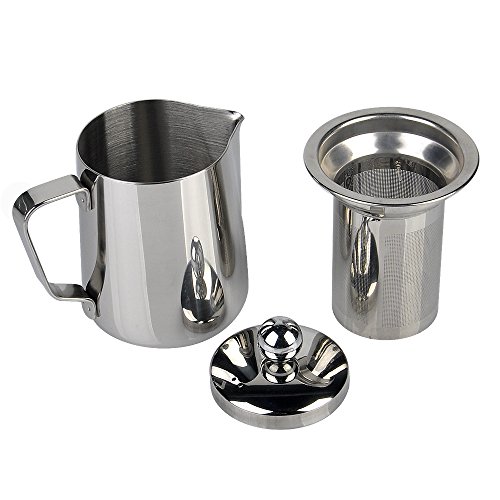 Stainless Steel Milk Frothing Pitcher with Infuser, Silver Tone, 12oz/350ml