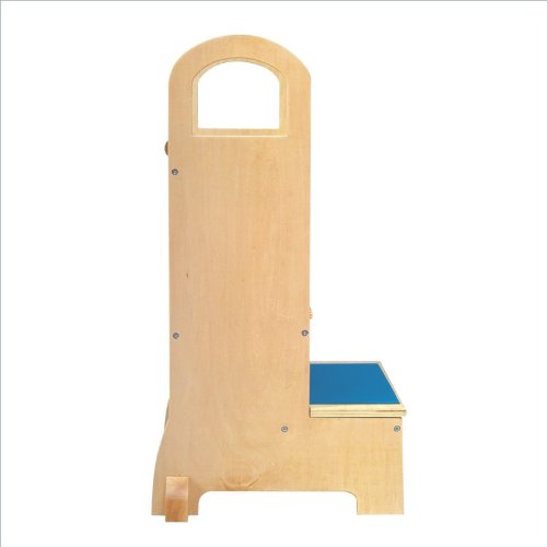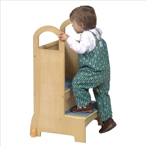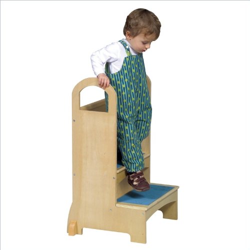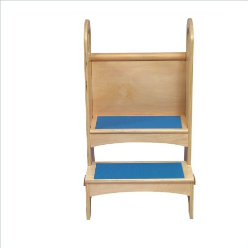 - Feature : Accessing counters and sinks is easy and fun for toddlers with the High Rise Step Stool! / Hand holds to assist in climbing up and down / Side panels and textured non-slip stair treads / Constructed of birch plywood with natural lustre finish / Dimensions: 32" H x 21" W x 17" D