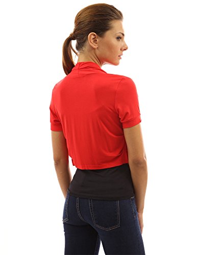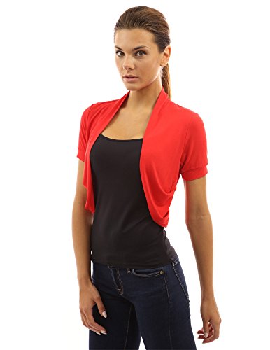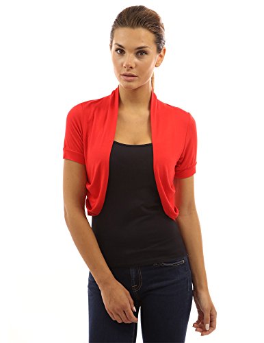 Short Sleeve Pleated Sides Crop Bolero Shrug Cardigan Top. Model in pictures is 5 feet 8 inches (173cm) tall wearing size S.