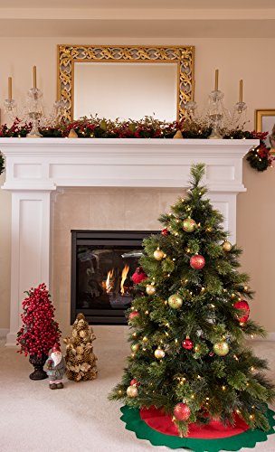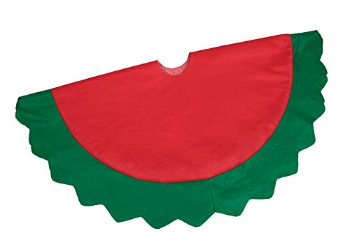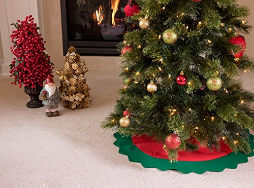 Red and Green Christmas Tree Skirt by Clever Creations | Red Cover with Wavy Cut Green Border | Traditional Theme Festive Holiday Design | Helps Contain Needle and Sap Mess on Floor | 32" Diameter