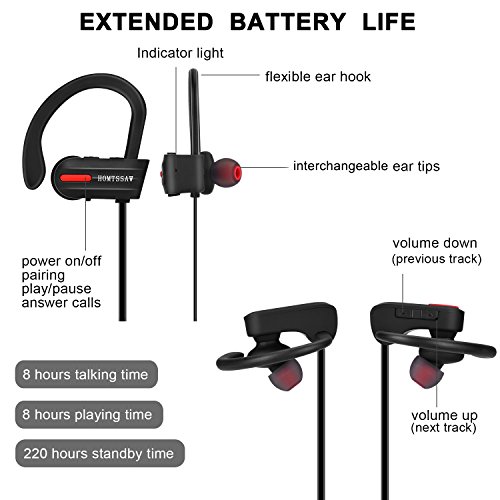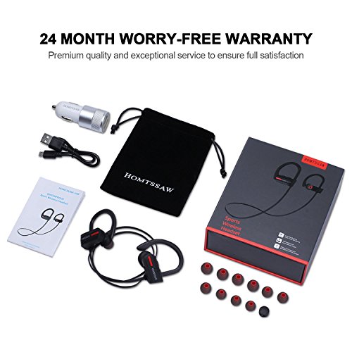 ★ Hervorragende PERFORMANCE Unsere ausserordentliche sport wireless Kopfhorer ist designed fur die Sportfreunde. Mit unserer Bluetooth Kopfhorer konnen Sie zu Trainingsraum, Training, Spazieren, Laufen und Sporttreiben gehen. Die HOMTSSAW wireless sport headphone ist ergonomisch entworfen, so dass sie nicht herabgefallen wird, die Ohrkoofhorer wird stabil in Ihrer Ohren bleiben.
