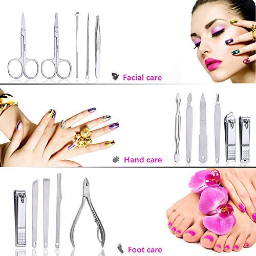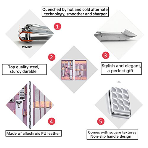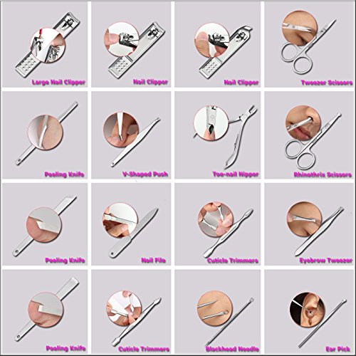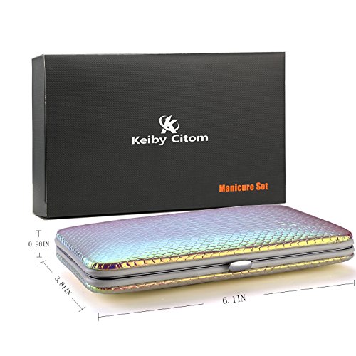 Keiby Citom Manicure Pedicure Set - High Quality, Durable, Portable, Healthy - Lifetime Guarantee. ?Keiby Citom is a manufacturer of professional manicure set for more than 10 years.We are committed to manufacturing high quality, durable, portable, comfortable, healthy and reliable beauty tools. ?Each tool of nail kit is manufactured by the careful process of cutting to make sure it can be used more comfortably. ?Small size of grooming kits makes it portable and lightweight,which is easy to carry,great for travel and daily life! ?The pedicure set is a great gift for yourself,families and friends! 2 * Nail Clippers: Trim finger nails 1 * Large Nail Clipper: Trim hard and thick toenails 1 * Cuticle Nipper: Trim cuticles 1 * Nail File: Make nails rounded,smooth 1 * Dead Skin Fork: Trim suface,agnail,callus,dead skin,etc 1 * Tweezer: pluck eyebrow and ingrown hairs 1 * Scissors: trim eyebrow 1 * Scissors: trim rhinothrix 1 * Cuspidal/Obtuse push-type broach: trim nail keratin and remove scrape nail polish 1 * Nail Cleaning Knife: Cleaning dirt in nails 1 * Ear Pick: Ear cleaning 1 * Acne needle:Blackhead/Acne removing 1 * Flat Callus Remover: Cleaning deak skin on foot 1 * Olique Callus Remover: Cleaning deak skin on foot 1 * Zigzag Callus Remover: Cleaning deak skin on foot Case size:6.3*1.1*4 inches? 0 |