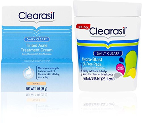 Clearasil Daily Clear, Tinted Acne Treatment Cream, 1 Oz & Hydra-Blast Facial Cleansing Oil-Free Pads, 90 Ct, 1 ea