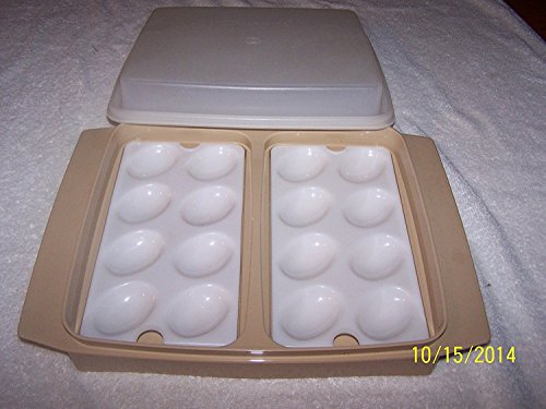 (Tupperware)/Kitchen Dining/Tableware/DIRECT FROM USA/Tupperware Devil Egg Tray (4)pc Beige with (2) White Trays and Sheer Seal