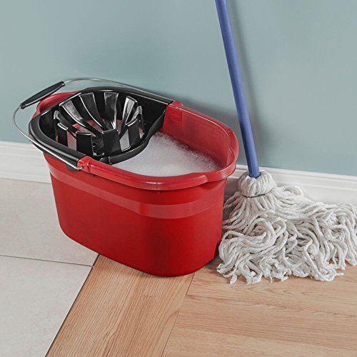 Studio : Sterilite Publisher : Sterilite Binding : Kitchen Product Description The 17.5 quart mop bucket is designed to remove excess water from a rope mop while keeping your hands dry. by placing the string mop into the wringer and firmly pushing down, excess water is squeezed from the mop into the bucket. A clip built into the wringer securely holds a standard mop upright, allowing you to carry a mop and bucket from room to room with one hand. Smooth rolling casters and comfortable metal handle make cleaning simple. The reinforced rim ensures full buckets of water will resist bending. Graduated markers allow you to easily measure recommended amounts of cleaning solution and water from your floor. Ridges on the bottom of the bucket provide a space for dirt to settle away from the mop. Two pour spouts on the rim and two recessed grips on the bottom of the bucket allow for controlled pouring from either end. 0