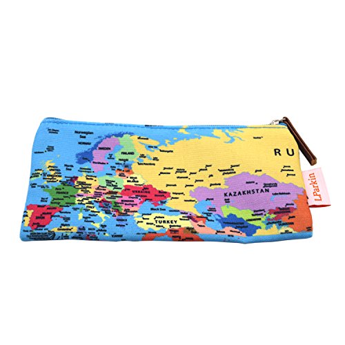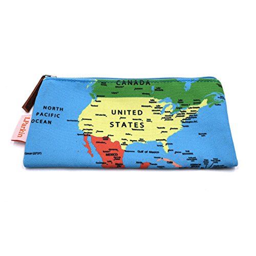 LParkin Map Pencil Case Students Super Large Capacity Canvas Pencil Case Pen Bag Pouch Stationary Case Makeup Cosmetic Bag (Map)
