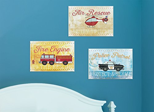 Stupell Home Décor Rescue Vehicles Icons And Mottos 3 Piece Wall Plaque Set, 11 x 0.5 x 15, Proudly Made in USA