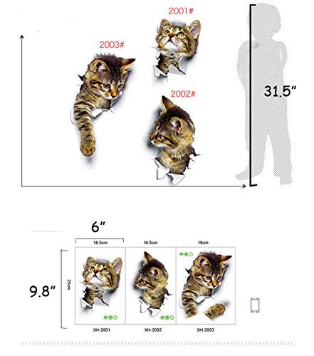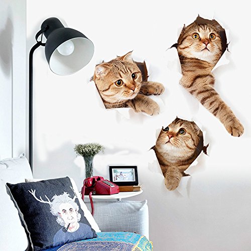 3d Cat stickers tile wall art animal decal cute paw cool funny sticker paper bathroom toilet seat fragile kawaii for baby laptop window car decorative removable (Cute)