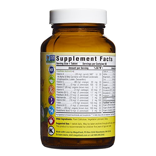 MegaFood Kid's One Daily is a pure 100% whole food multi-vitamin and mineral supplement formulated by a mother to deliver wholesome nourishment without any sweeteners, preservatives, fractionated oils, waxes, colors or flavors. Made with a variety of fresh raw foods including organic brown rice, cabbage, broccoli, cranberries, carrots, whole oranges and nutritional yeast, Kid's One Daily provides a balanced spectrum of 24 essential nutrients and immune-boosting antioxidants to support healthy growth and development. MegaFood has received the Non-GMO Project Verified seal from the Non-GMO Project. The Non-GMO Project is a third party certification program that assures a product has been produced according to consensus-based best practices for GMO (genetically modified organism) avoidance.Feature