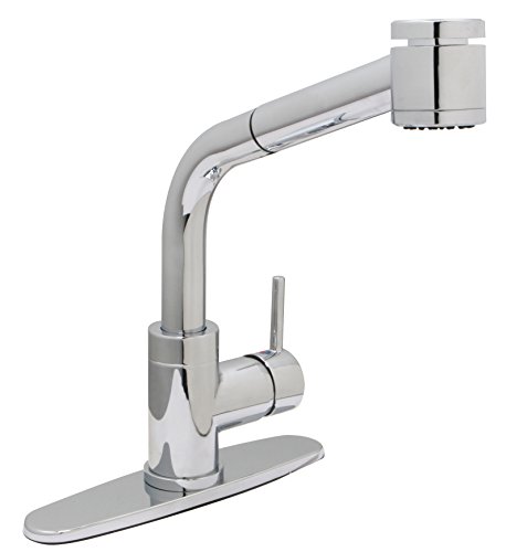 Huntington Brass 51151-01 Single-Handle High Arc Modern Pull-Out Kitchen Faucet with Sprayer and Optional Deck Plate, Chrome