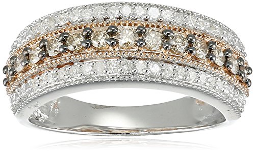 -. Binding : Jewelry -. Brand : Amazon Collection -. Color : White -. Department : Womens -. Feature : Sterling silver ring featuring central row of champagne diamonds framed in rose gold-plated milgrain trim and flanked by two rows of white diamonds / All our diamond suppliers confirm that they comply with the Kimberley Process to ensure that their diamonds are conflict free. / Imported -. Label : Amazon Collection -. Manufacturer : Amazon Collection -. Model : 414446TCH/STGSIL/P/HR/US6-Parent -. MPN : 414446TCH/STGSIL/P/HR/US6-Parent -. PartNumber : 414446TCH/STGSIL/P/HR/US6-Parent -. ProductGroup : Jewelry -. ProductTypeName : FINERING -. Publisher : Amazon Collection -. Studio : Amazon Collection -. Title : 14k Rose Gold Plated Sterling Silver Champagne and White Diamond Three Row Ring (1/2 cttw, I-J Color, I2-I3 Clarity)