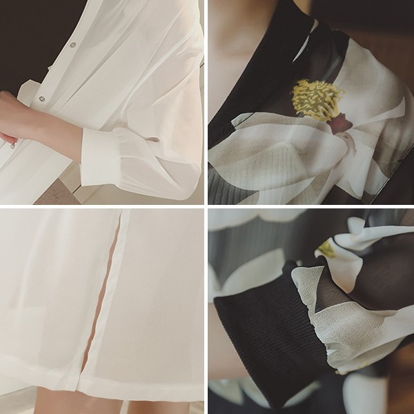 商品名プリント柄/無地 シフォン 薄手 ロングカーディガン