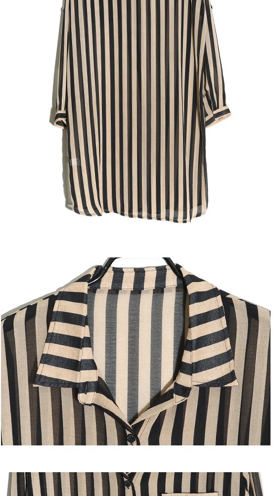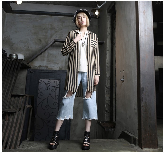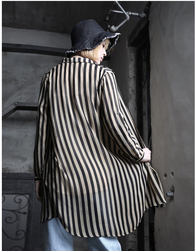 商品名:シャツ レディース ブラウス ストライプ 長袖 個性的 春 2018 モード系 個性的 40代 ファッション