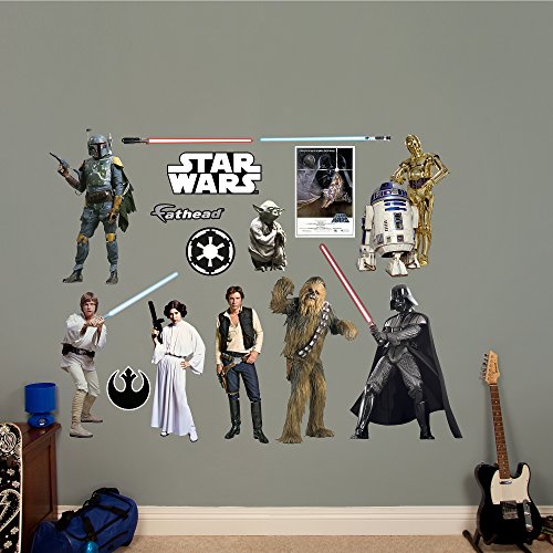 -. Feature : Decal sizes vary: Boba Fett 17"W x 31"H, Yoda 8"W x 14"H, R2-D2 & C-3PO 19"W x 28"H, Luke Skywalker 23"W x 34"H, Princess Leia 11"W x 28"H, Han Solo 11"W x 31"H, Chewbacca 18"W x 34"H, Darth Vader 28"W x 40"H / Thick high-grade vinyl resists tears, rips and fading. MADE IN THE USA. Officially Licensed - Fathead Wall Graphic - Decor - MAKES A GREAT GIFT / Ideal for decorating a home or office, apartment or dorm. Can be moved and reused without damage. Forget painting or hanging anything that requires nails, glue or tape. Just peel, stick and impress. It's that easy / Official Lucas STAR WARS Fathead / ONLY buy your Fathead on Amazon if it's listed as "In Stock" and "SHIPS FROM and SOLD BY AMAZON.COM" to know you are getting an official Fathead decal