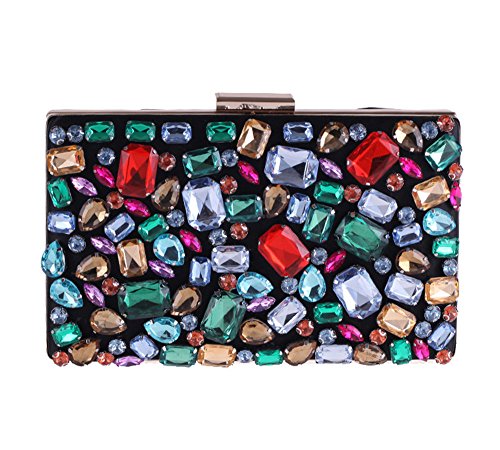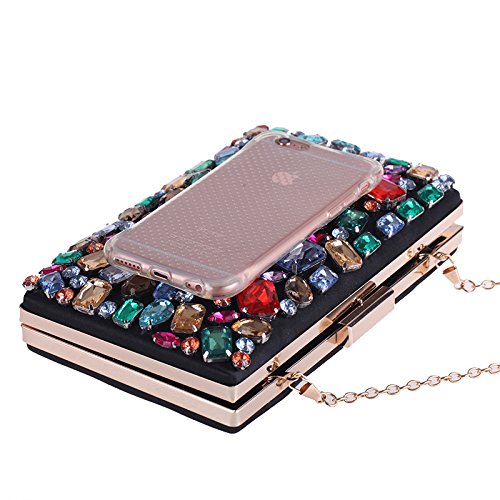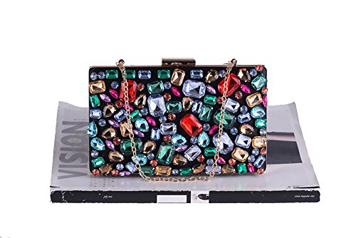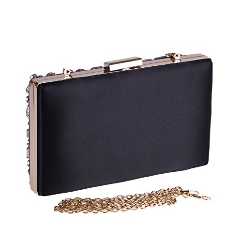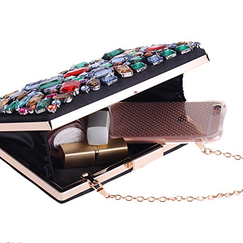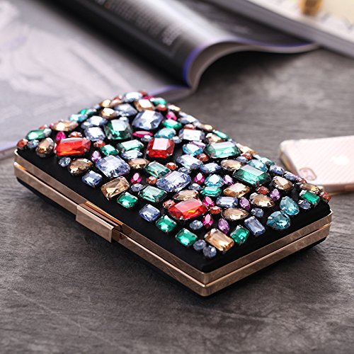 Product Description Beautiful colorful big stones beaded black satin evening handbag for women. shinny and elegant formal clutch bag for special occasion. 0