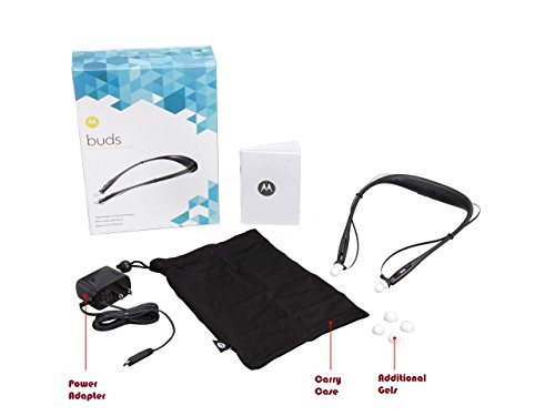 The Motorola Buds SF500 Universal Bluetooth Stereo Headset is your best new buds. A lightweight innovative design lets you wear for hours without fatigue. Ear stems naturally reposition themselves to fit you perfectly. The Motorola Buds SF500 offers Premium HD audio and noise cancellation quality that can be roamed up to 150 ft. from your device.. Color - Black. Dimension - 5.5 x 7.5 x 0.75 in.Feature