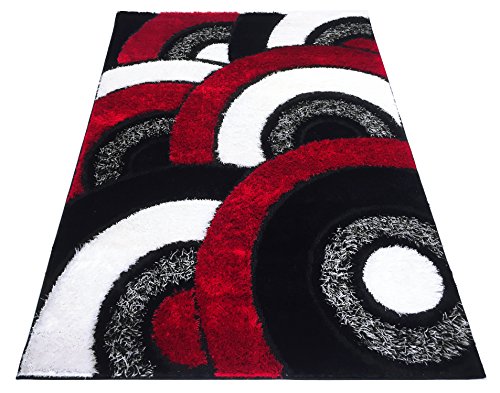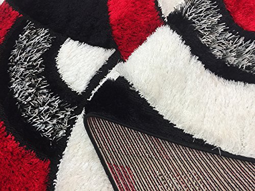 - Feature : Machine woven in Turkey, synthetic(polyester) area rugs with 1.18 inch (30mm) pile height, cut and loop style in high knot count polyester quality with modern designs in four-colorways at the most competitive prices. / Contemporary Modern Design : Abstract | Color : Black Red White / High Quality Polyester Shaggy with natural jute backing / Modern look | Vibrant colorfast and shimmering colors | Stain resistant | Anti-static | Moth proof | Easy to Clean / Approx Size Width: 48 inch Length: 65 inch