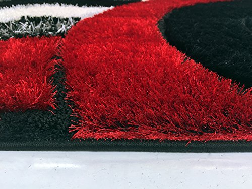- Title : Royal Collection Black Red White Abstract Contemporary Design Shaggy Area Rug (6053) (4'x5'5")