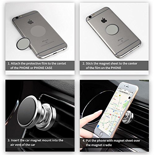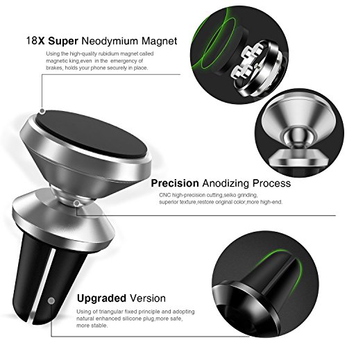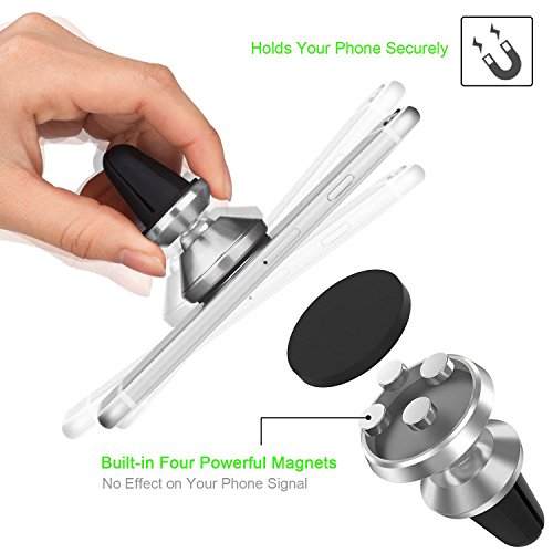 - Powerful Magnets: The reinforced air vent magnetic car mount features 4 strong magnets built into the mount head to hold and ensure your cell phone stay securely even an emergency brakes