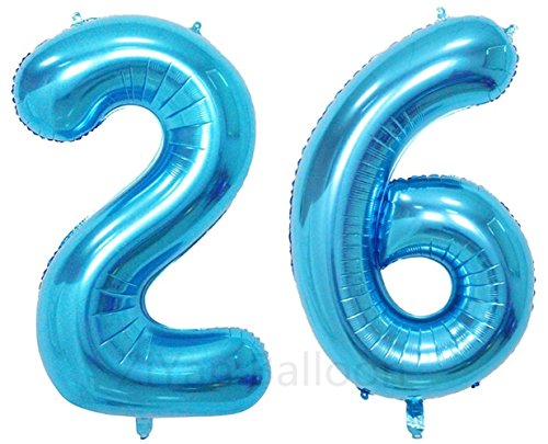 ZiYan 40 Inch Giant 26th Blue Number Balloons,Birthday / Party balloons