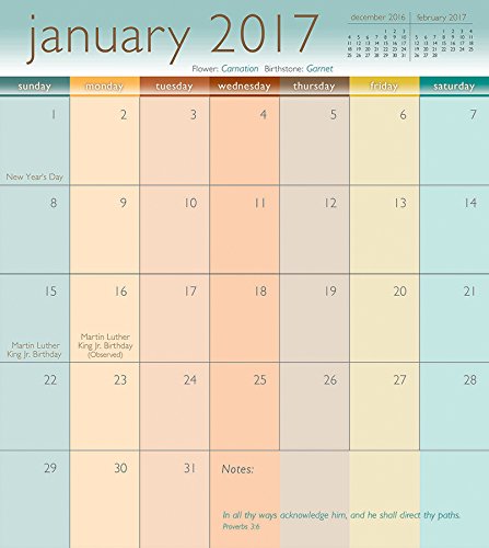 -. Feature : Colorful floral artwork by Sandy Clough / Full color wrap-around design / Colorful month-at-a-glance grids / Different KJV Scripture verse every month / Convenient Size 3 5/8" x 6 3/8"