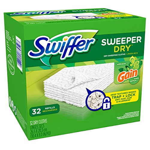 Swiffer Sweeper Dry Sweeping Pad Refills, Hardwood Floor Mop Cleaner Cloth Refill, Gain Scent, 32 Count