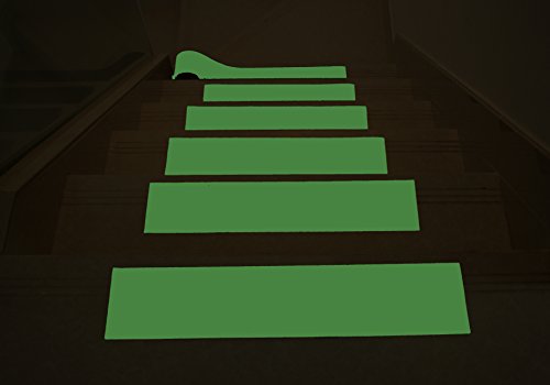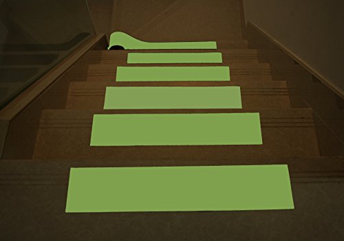 - Glow in dark -- especially safety sign for night motion. 2 in. x 16 ft. Size with Strong Adhesion -- generally speaking, applicable to any kind of surfaces, such as stairs, skateboard, riverbank, boat, ramp, deck, dock, swimming-pool's bank, ladders.