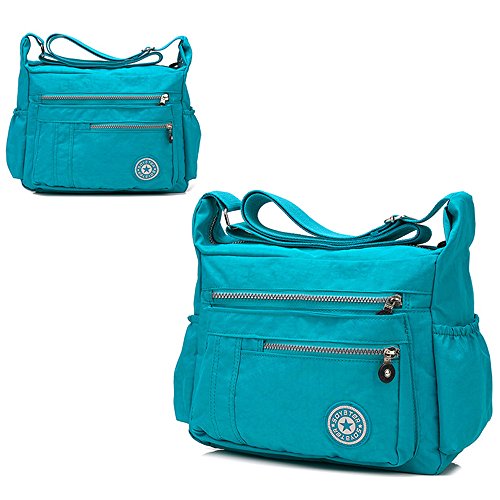 Product Description Item Type: Crossbody Bag/Messenger Bag Department: Women Material: Waterproof Nylon. Lining Fabric: polyester Closure: Zipper Size: 35cm x 23cm x 13cm/13.8'x9'x5.1' IN Size may be 2 cm/1 Inch in accuracy due to hand measure Occasion: casual, travel, shopping. Pockets: 9 Structure: 2* front zipper pockets, and 1* back zipper pockets, 2*side pockets, 1* main compartment, 1* interior zipper pocket, 2* interior phone pockets. Capacity: can fit IPAD, phone, wallets, water bottles, outdoor accessories and stuffs.
