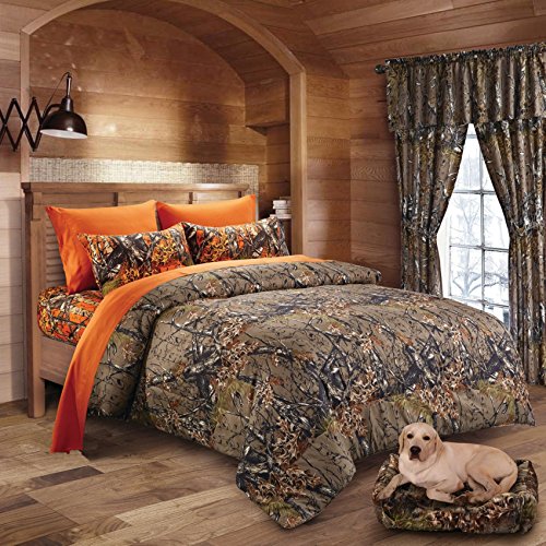 -. Title : Hunter Camo Comforter, Sheet, & Pillowcase Set Brown & Orange