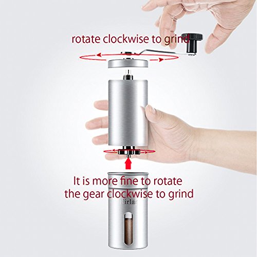 -. Feature : Built-in adjustable grind selector ensures you have 100% control,Quickly adjust the grind size with a simple twist of a knob. Perfect for multiple brewing methods such as: espresso, pour over, percolate for Turkish coffee spice, herbs, or anything else. / Our conical ceramic burr produces a sharp, consistent grind. Extract the fine flavor from your coffee beans for that perfect cup of coffee with the best aroma and taste. / Small ,lightweight & portable,This coffee mill is made of durable stainless steel, making it red enough to survive outdoors camping . Have fresh coffee anywhere! / No batteries, power, or long cords needed to operate your grinder, allowing you to enjoy fresh ground coffee beans on your next camping, hiking, or backpacking trip. / Convenient hand crank mechanism eliminates over 90% of the noise that electric grinders produce. Imagine grinding your favorite coffee quietly in an office cubicle or when your loved ones are fast asleep.