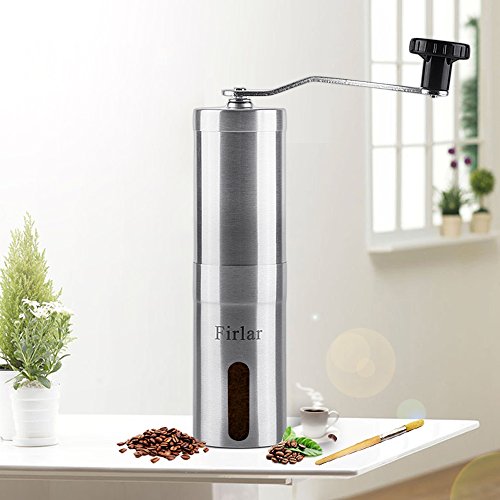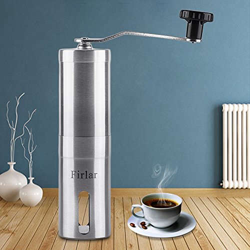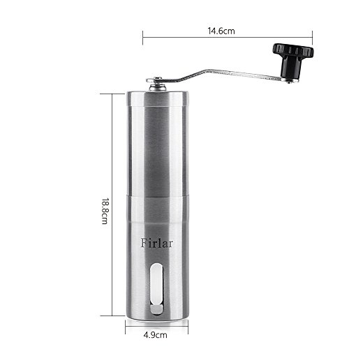-. Title : Firlar Premium Manual Coffee Grinder Stainless Steel Body Adjustable Ceramic Conical Burr Hand Crank Mill Grinds Beans Spices Brushed