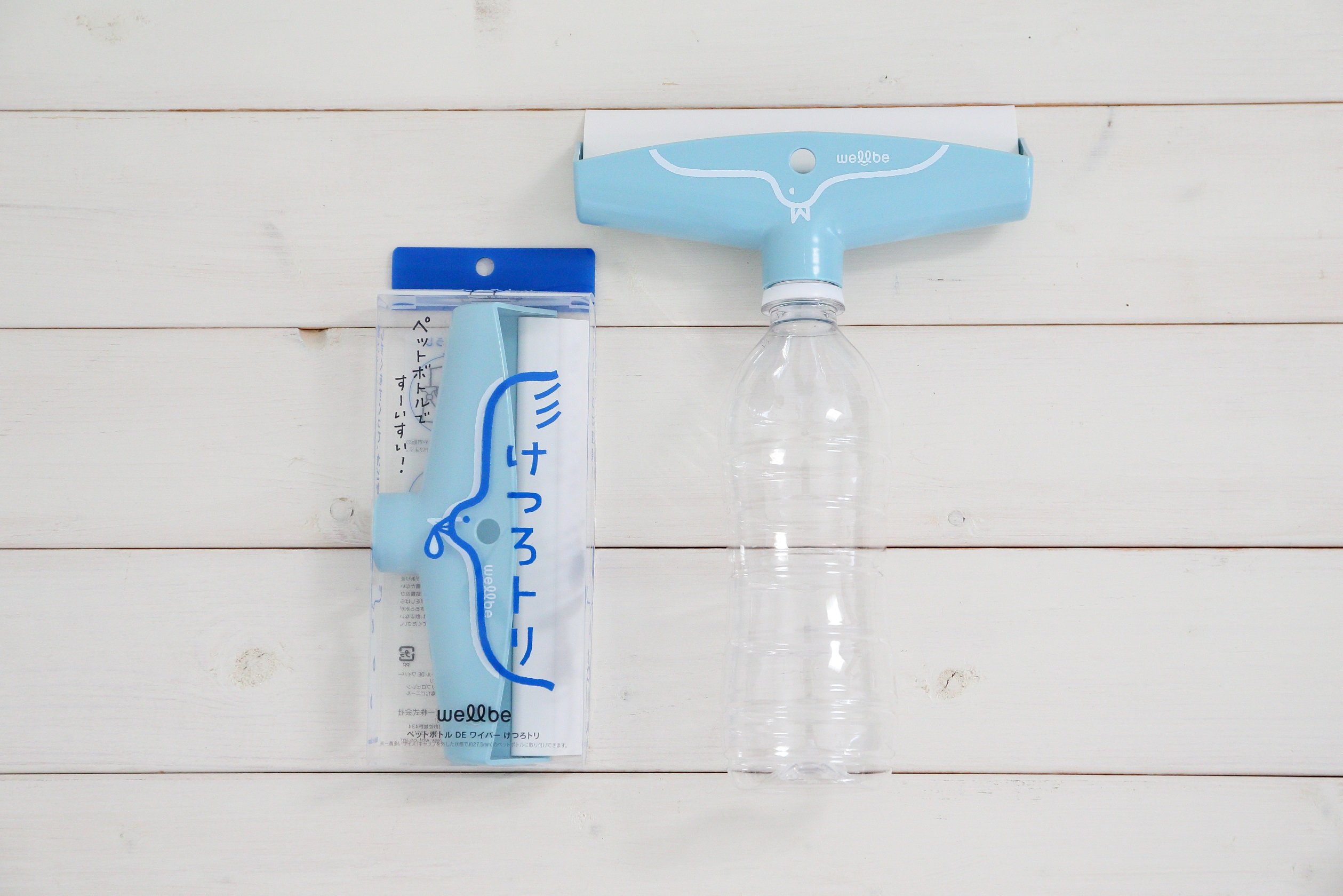 Insert a plastic bottle DE wiper into a used PET bottle, turn it round and close it.