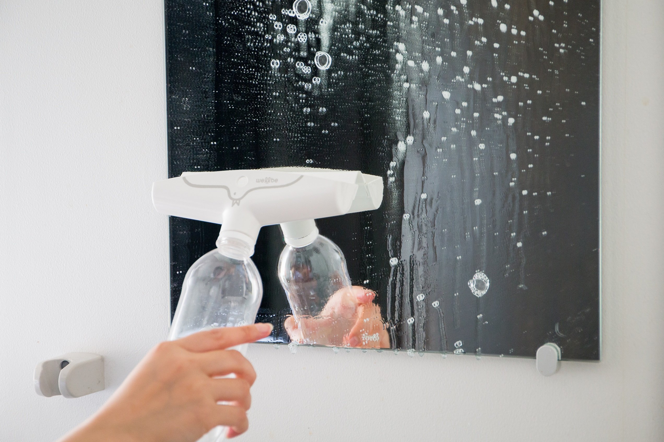 When spraying water or a commercially available liquid cleaner on a mirror or windowpane, wiping it with a plastic bottle DE wipe, the towel marks do not remain and it finishes cleanly.