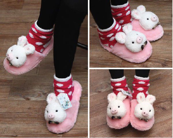 もこもこぶたうさぎの顔が可愛いポイント!キュートなスリッパ★