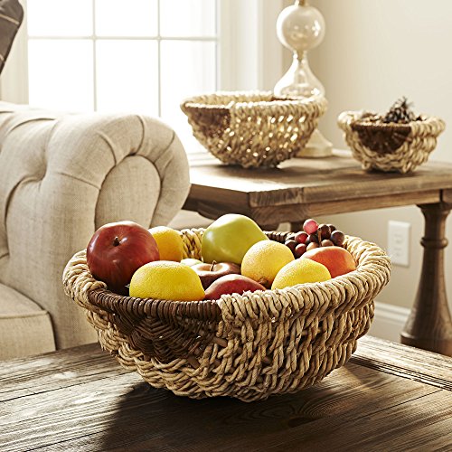 Set of 3 nested decorative round Wicker basket bowls