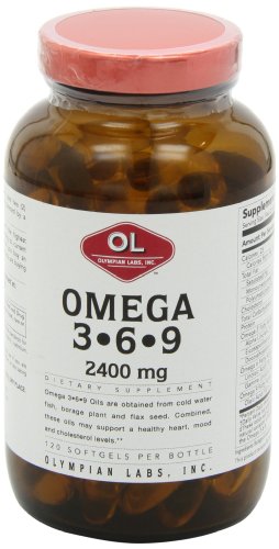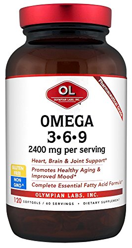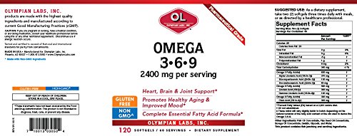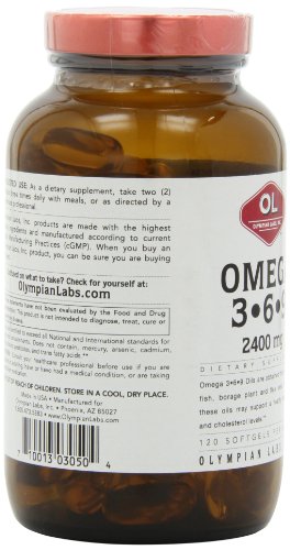 Olympian Labs Omega 3-6-9, 2400 mg per serving, 120 Softgels, Glass Bottle