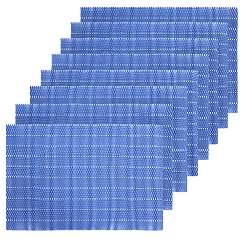 Deconovo Durable Double-faced Crossweave Woven Table Placement Heat Insulation Table Pads Anti-skid Placemats for Pots and Pans 12 W x 18 L Inch Blue and Silver Grey Set of 8