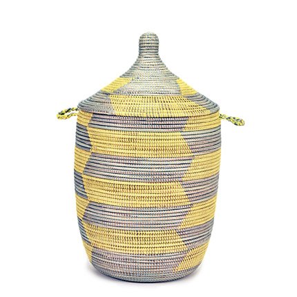 -. Title : African Laundry Hamper Basket - Yellow & Silver - Medium