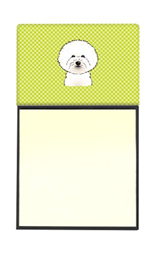 Caroline's Treasures Checkerboard Lime Green Bichon Frise Refillable Sticky Note Holder or Postit Note Dispenser, 3.25 by 5.5", Multicolor