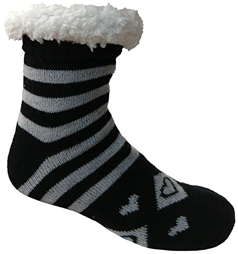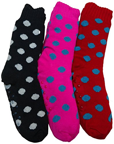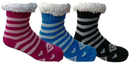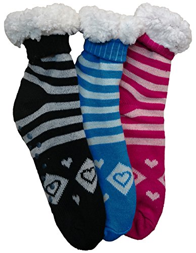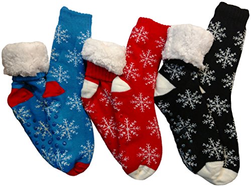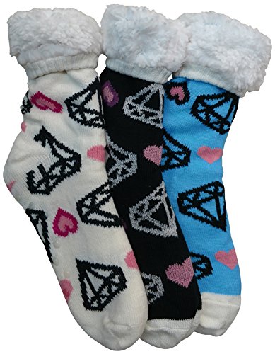 -. Feature : There is no better feeling than having warm and toasty feet. So treat yourself to these fully fleece lined slipper socks. Each pair features a thick sherpa lined interior for the a comfortable and warm sock perfect for the winter. The bottom of the socks feature non skid gripper dots to prevent slipping and sliding on the floor making it just a little more perfect for indoor wear. / The perfect fluffy socks offer protection between your feet and the floor. Whether it's hardwood or tiled floors, you will no longer have to dread stepping out onto the floor. The gripper bot provide traction making it easier to walk in and also safer. The thick padded socks gives your feet a cushion for additional comfort. / Choose from a variety of fun, colorful, and festive patterns suitable for the holiday season and throughout the fall and winter. Ideal for cold mornings, sleeping in, lounging on the couch while you watch TV. Patterns include snowflakes, reindeer motifs, diamonds, hearts, and more. Show off your fun and festive personality with these chic sherpa socks. / Made with some of the softest and fluffiest sherpa fleece lining, whether it's for yourself, a loved one, a family member, or your best friend, the soft and cozy sock is a thoughtful gift. A must have for Christmas and the holiday season. Also the perfect companion to take with you on vacation or trips. / Size 9-11 will fit women's shoe sizes 5-10 for a relaxed and comfortable fit. Wash instructions: Machine washable, but hand wash to preserve life of the socks. Do not bleach, iron, or use softener. The perfect gift and stocking stuffer. Each pack includes 3 pairs of high quality indoor slipper socks.