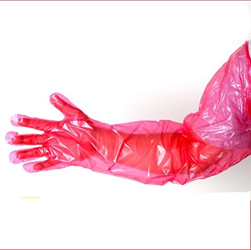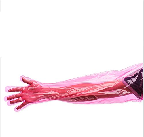 50pcs Disposable Veterinary Insemination Rectal Long Gloves Long Full Arm 85cm for Veterinary,red
