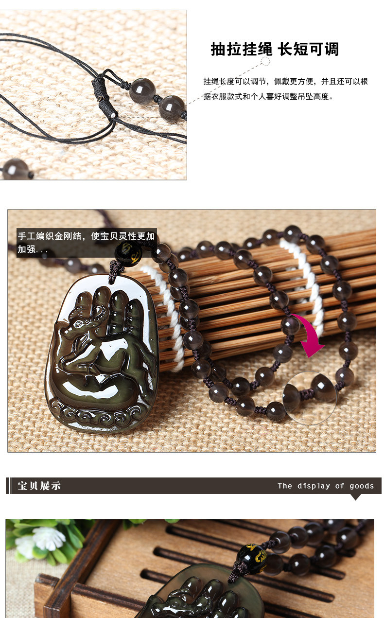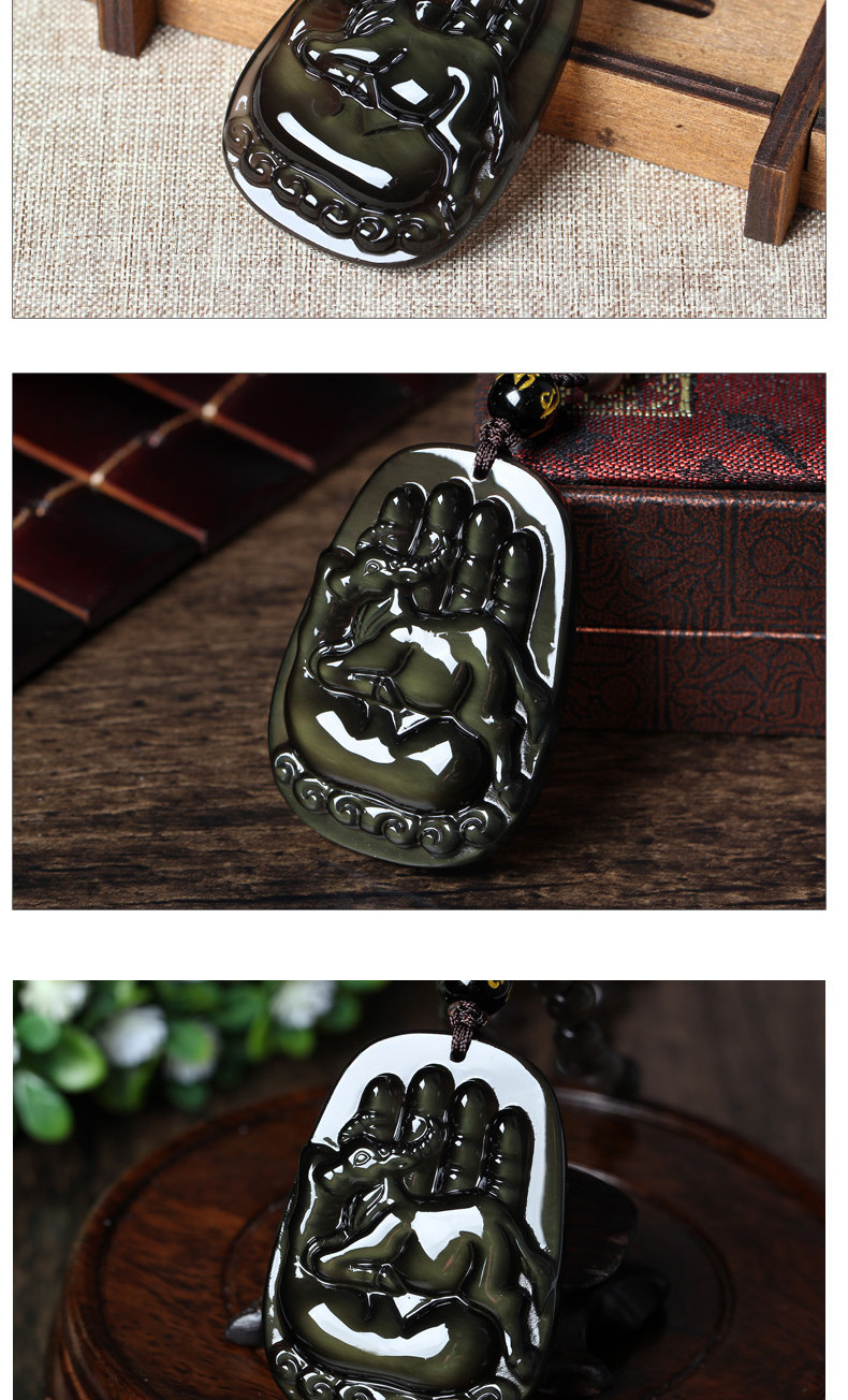 开光冰彩黑曜石鹿鹭通财吊坠十二生肖吊坠