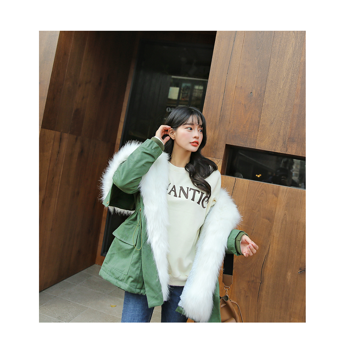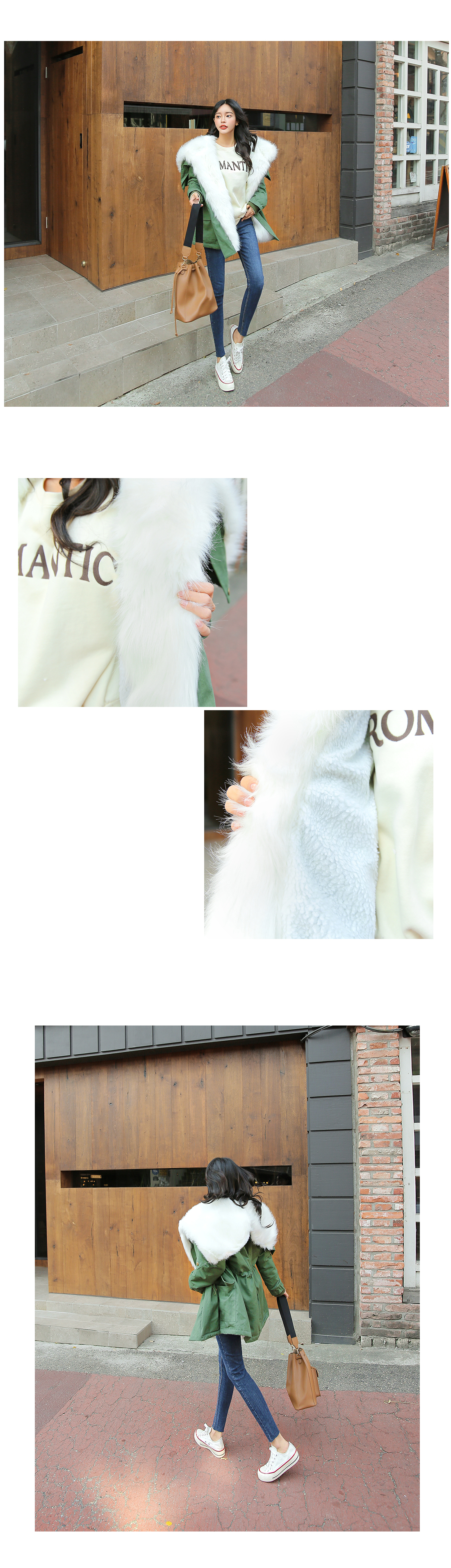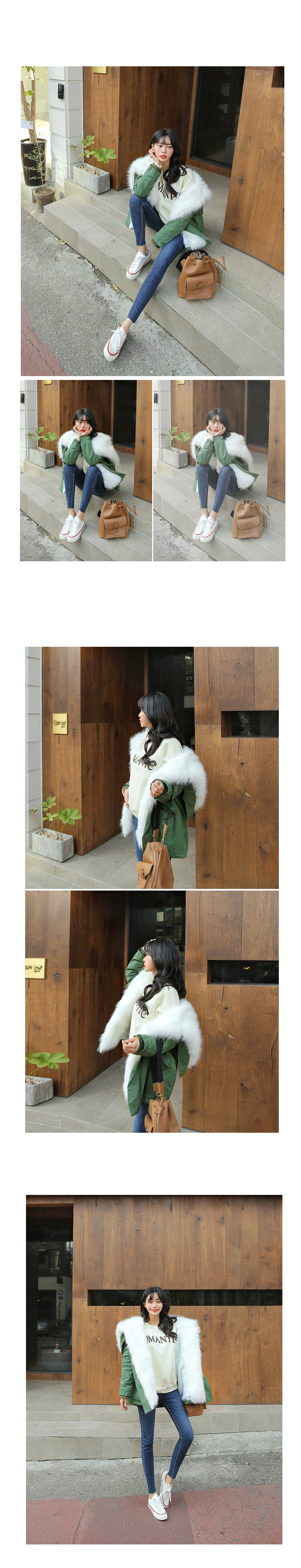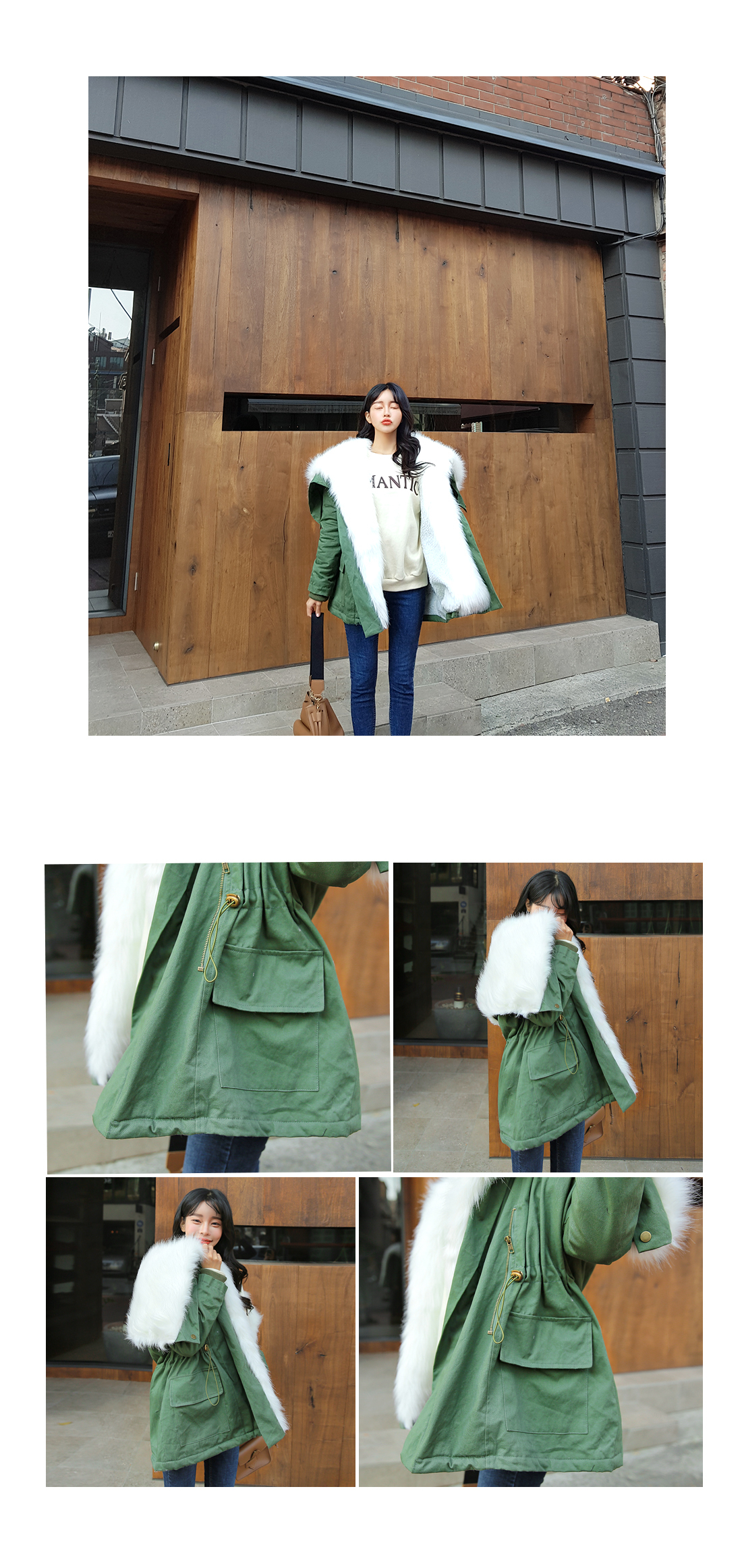 후끈후끈! 보온을 지켜줄 퍼 야상을 준비했어요. 전체적으로 보온성을 높혀주는 안감이 자리하고 있으며,