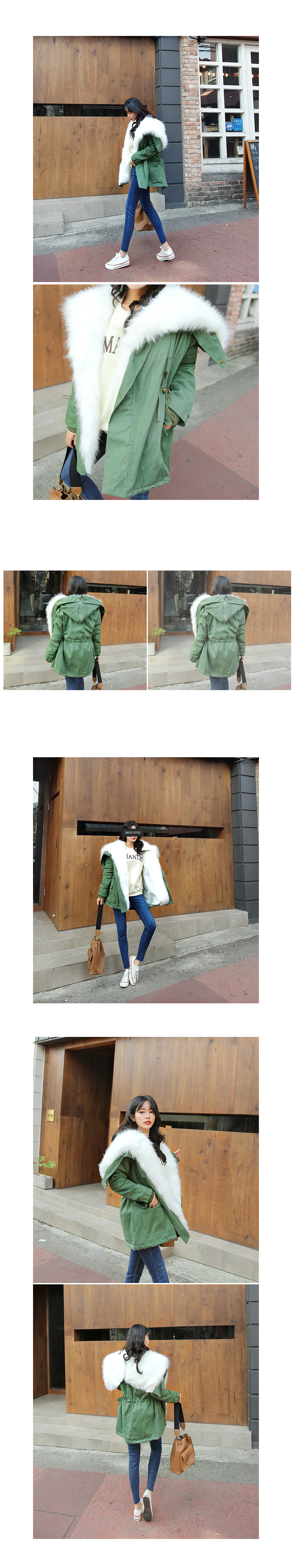 한층 포근하고 따뜻하게 즐기기 좋답니다! 후드 부분까지 퍼가 촘촘하게 자리하고 있으시며,