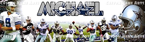 -. Binding : Kitchen -. EAN : 0628104132238 -. Feature : Picture (30 inches x 8.5 inches) - With Your Name On it / Same Font Will Be Used To Print Your Name / Watermark Will Not Be Printed / Please MESSAGE me your name after purchase -. IsAutographed : 0 -. Label : Custom Name Arts -. Manufacturer : Custom Name Arts -. ProductGroup : Home -. ProductTypeName : HOME -. Publisher : Custom Name Arts -. Studio : Custom Name Arts -. Title : Personalized Dallas Cowboys NFL Banner Birthday Poster Custom Name Painting Wall Art -. UPC : 628104132238