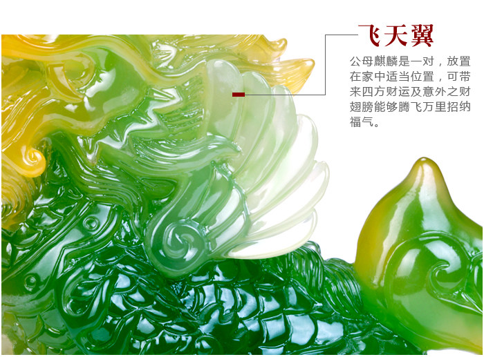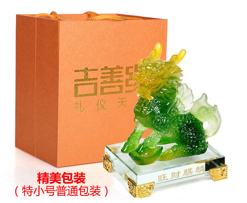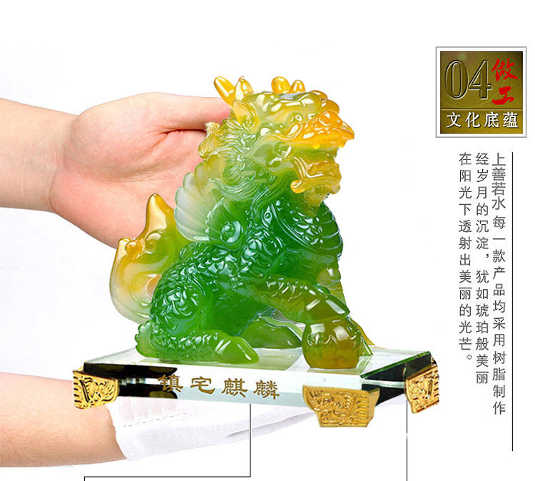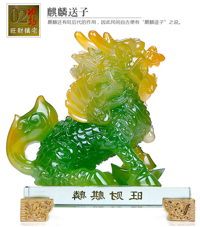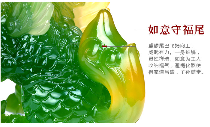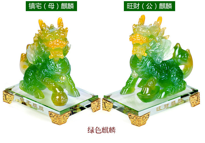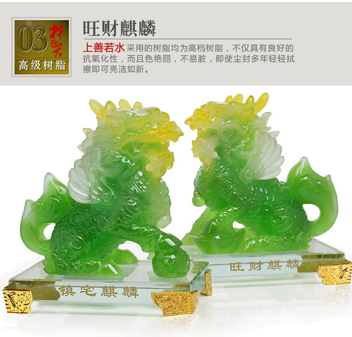 开光玉麒麟摆件一对 招财风水办公桌客厅家居装饰品电视柜工艺品