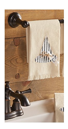 - Canvas towel with frayed edges features witch hat applique in printed French ticking with linen "boo" tag and jute bow.